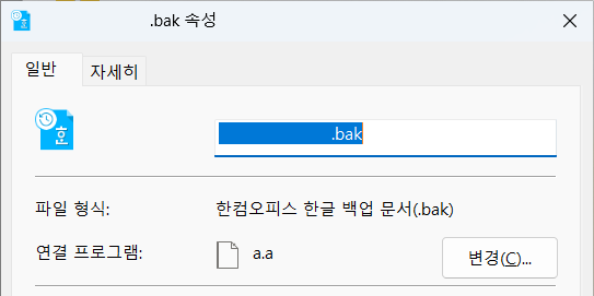 여러 소프트웨어의 백업파일 확장자인 bak 파일이 한글을 설치 후 한글로 연결되며 한글 아이콘으로 표시되어