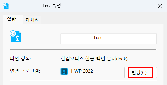연결 프로그램의 변경 버튼을 누릅니다.
