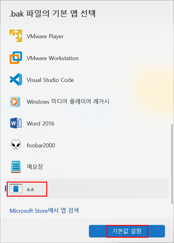 연결 프로그램이 a.a 로 변경되면 확인을 눌러 나옵니다.